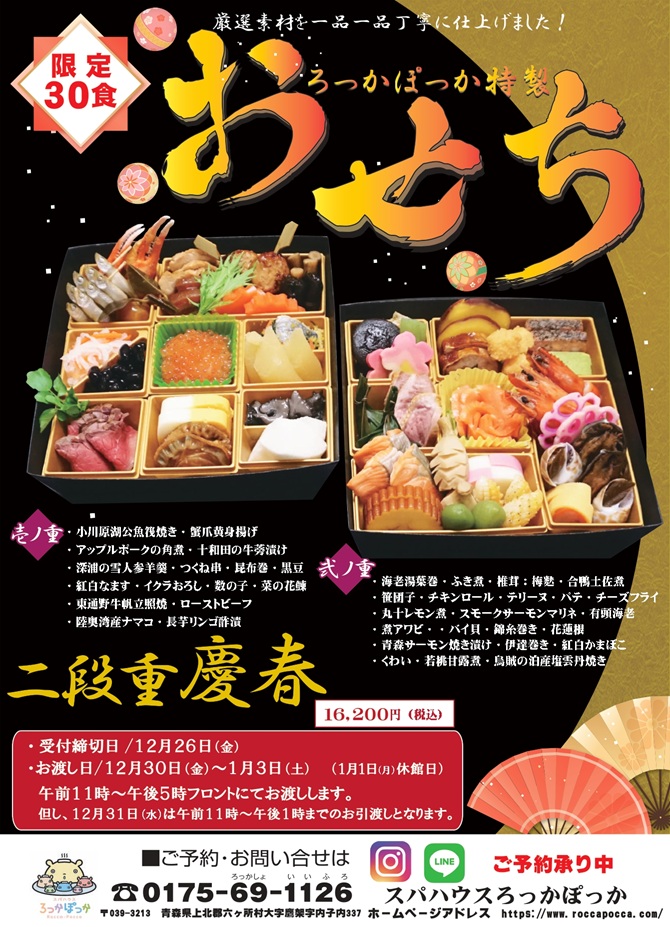 12月30日(金)~1月3日(土)まで!『ろっかぽっか特製おせち』