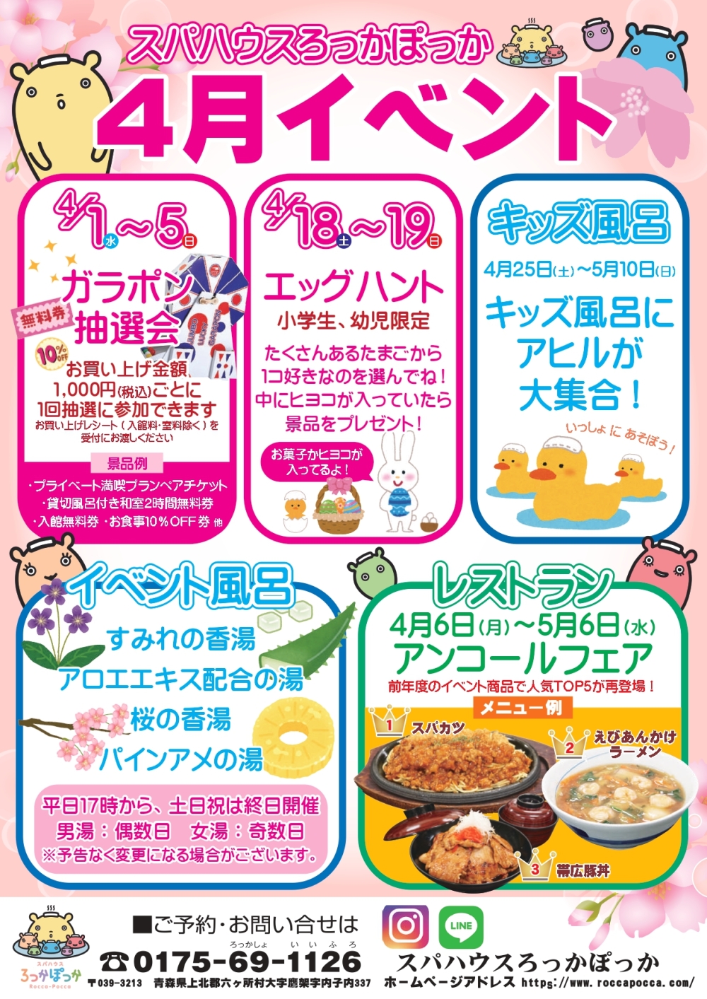 スパハウスろっかぽっかは4月1日にリニューアルオープンいたします🎉
